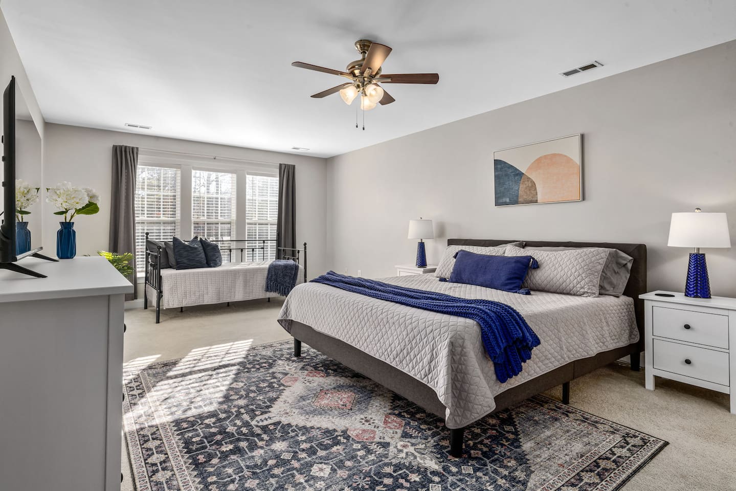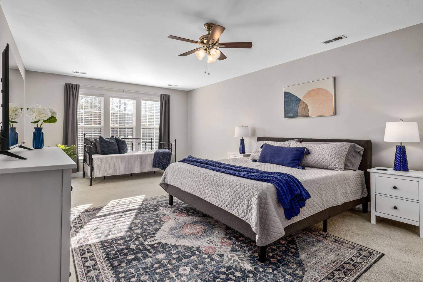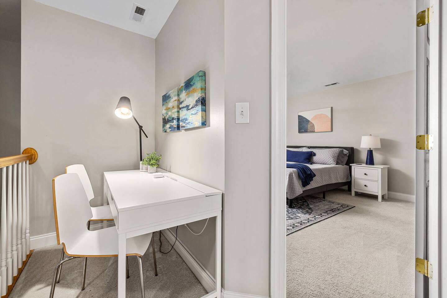 5 Stars don't lie! Stay at this roomy 2 bed, 2 bath townhome that will delight you with comfort, style and space for you, family and friends to enjoy your time here in Cary! Special features include a main floor bedroom and full bath, fully equipped kitchen, dedicated workspace, private deck, community amenities and access to miles of greenway just steps away. High-speed internet and TVs equipped with YouTube TV, plus access to log into your favorite apps included. Whether you are in town for business, pleasure or both, you’ll appreciate all that The Cloverleaf has to offer. At The Cloverleaf, we take pride in our owner-managed property, offering personal service and meticulous cleaning for your comfort and peace of mind. We can't wait to welcome you to Cary, NC! Need something a little larger? Book our neighboring property, The Junction House with 3 bedrooms just next door. See the link in our profile. All the Details: LOCATION • 10-12 min to RDU, NCSU, PNC Arena, Triangle Aquatics Center, Wake Med Soccer Park, USA Baseball Training Center or the State Fairgrounds • 2.5 miles to the new Downtown Cary Park with surrounding popular restaurants, breweries and entertainment • 20-30 minutes to downtown Raleigh or Durham • Easy access to the Black Creek Greenway with marked trailheads leading to N Cary Park, Lake Crabtree, Umstead State Park plus many others • We are located just north of downtown Cary, central to all of the Research Triangle Area. On the map, we are west of Raleigh, South East of Durham and Chapel Hill and north of Apex and Holly Springs. GUEST ACCESS • Covered porch for rainy days • Smart lock access with personalized door code • 2 dedicated parking spots steps from the front door KITCHEN • Refrigerator/freezer with filtered water and ice maker • Electric range and microwave • Cookware, utensils and tools, dinner and glassware • Keurig coffeepot, kettle, starter supplies of coffee or tea, blender, crockpot, air fryer/toaster oven • Granite counters, deep sink and tile backsplash make working in the kitchen a pleasure • Highchair, plastic dinnerware, utensils and cups for the kiddos LIVING AREA • Sectional sofa, comfy armchairs and plenty of pillows and blankets • Smart HDTV with YouTube TV & HBO Max included, plus apps to log into your own accounts • Games for kids and adults DECK • Spacious and private deck overlooking a wooded buffer • Dining table and umbrella PRIMARY SUITE • King-sized comfy bed with cotton sheets • Twin daybed plus fold up mattress, linens included • Pack-n-Play, crib sheet and blanket for the littles • HDTV with YouTube TV & HBO Max included, log into your own apps • Walk-in closet with luggage rack, extra blankets, pillows and hangers • Attached bath with dual vanity, soaker tub & shower • Shampoo/Conditioner, body wash and bath supplies included • Full length mirrors NOTE: If you need add’l baby/child equipment for your trip, we can offer a discount through our agreement with BabyQuip, a local rental company. Please ask for the direct link to their website once your reservation is confirmed. GUEST BED & BATH • Main floor access with Queen bed and cotton sheets • Walk-in closet with luggage rack, extra blankets, pillows and hangers • Adjacent bath with tub/shower • Shampoo/Conditioner, body wash included • Full-sized front loader washer/dryer with supplies included OFFICE • Loft area includes desk, lighting and extension cord with USB ports • Task lighting and office supplies ** Please note that the community pool is run by the Home Owners Association and is subject to availability based on HOA management. Pool is open from Memorial Day to Labor Day.